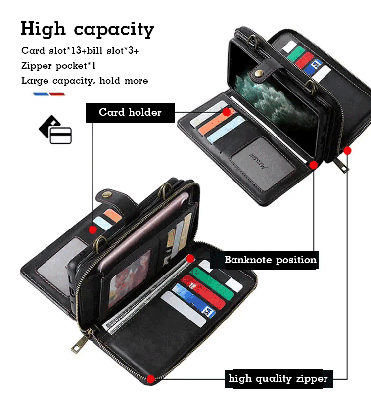 Upgraded wallet all-in-one iPhone case Use high-quality materials Small, portable and powerful Detachable design Zipper pocket can be used alone Practicality (strong)